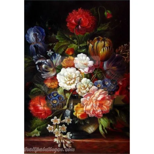 Flower paintings are artworks that showcase the beauty of various flowers, bringing freshness and romance to a space. These paintings highlight the colors and shapes of flowers while also expressing emotions, love, and life, creating a harmonious and relaxing atmosphere.